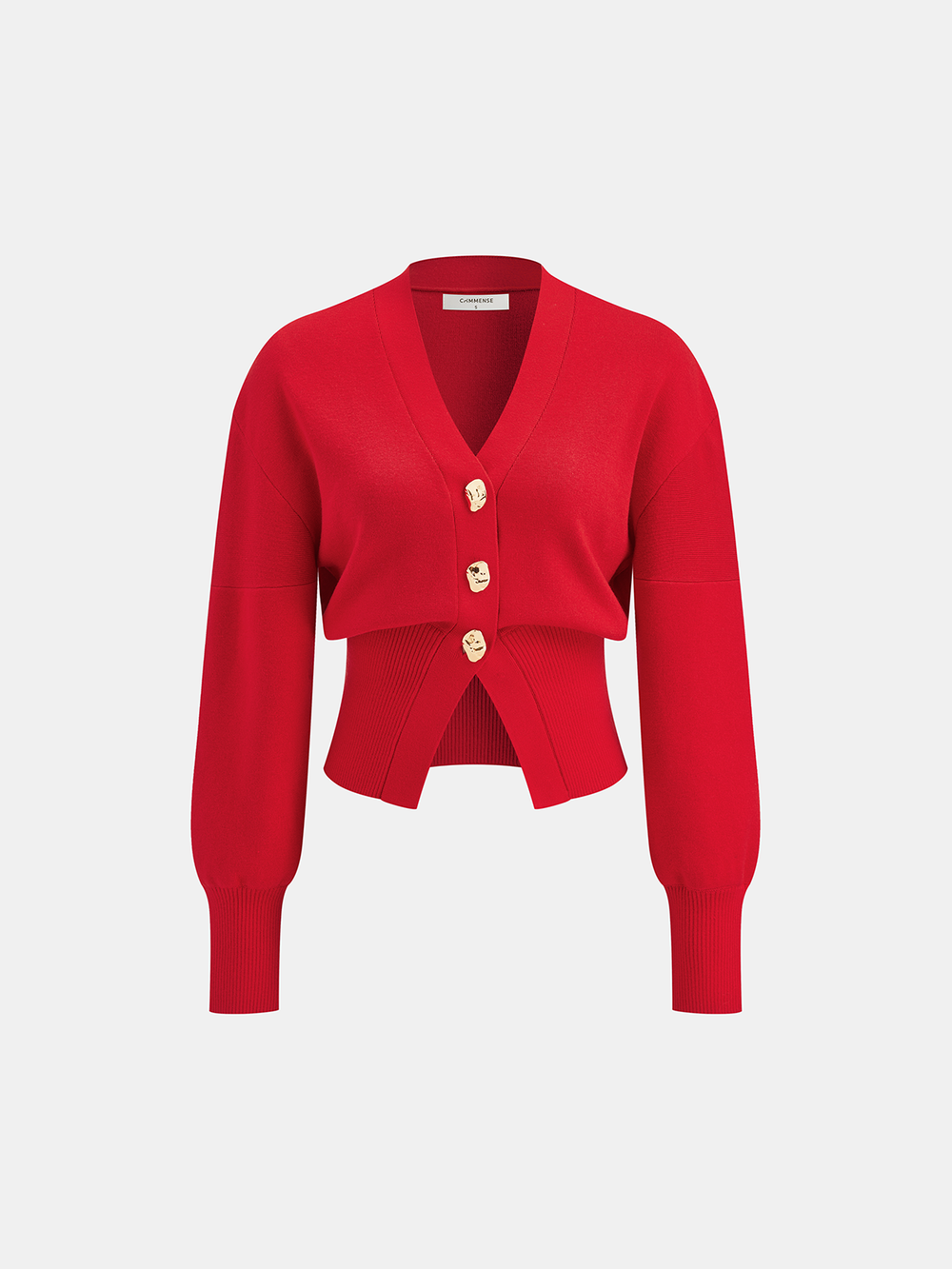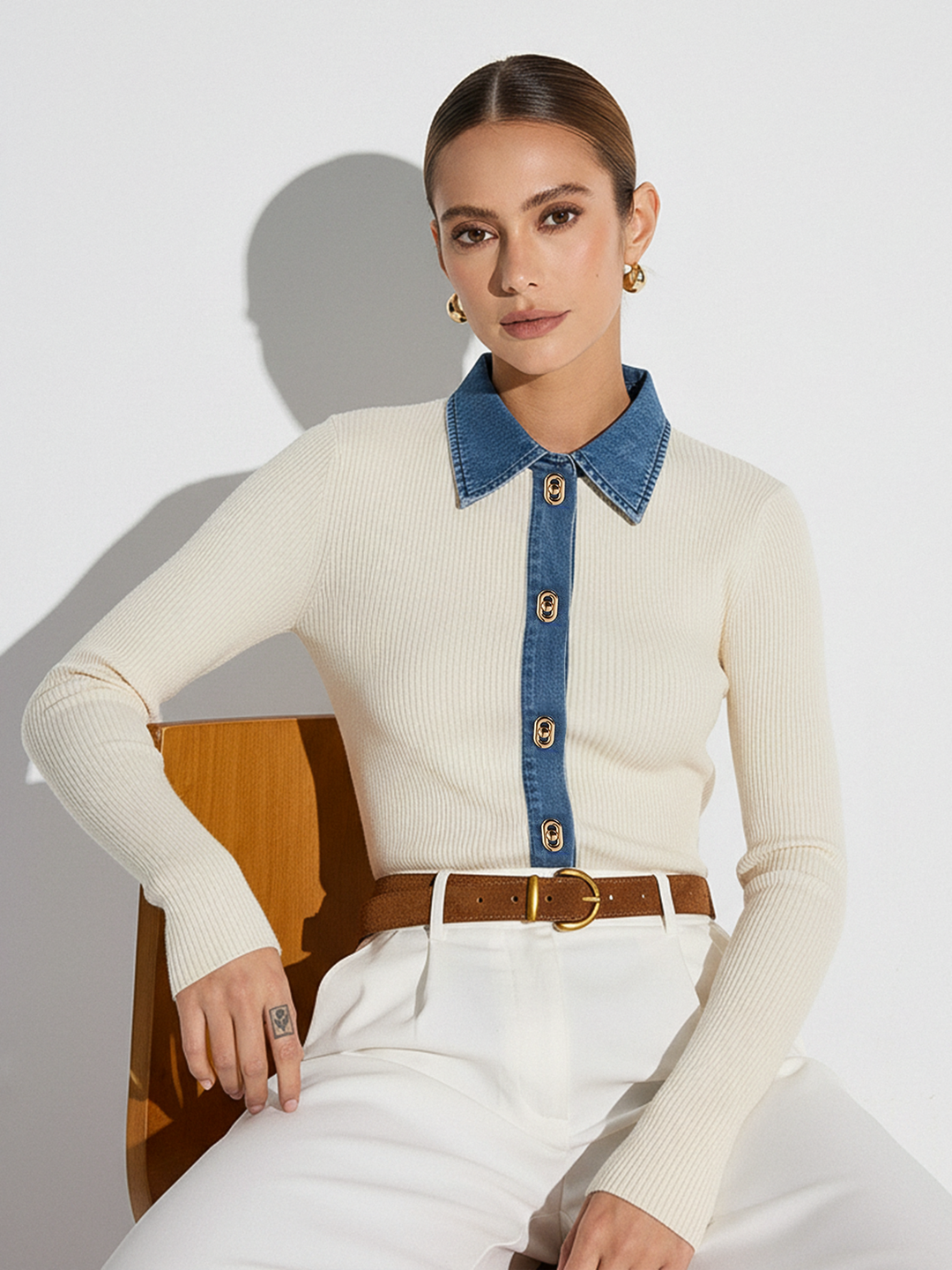 Cárdigan de Lana con Cuello de Mezclilla y Botones de Metal