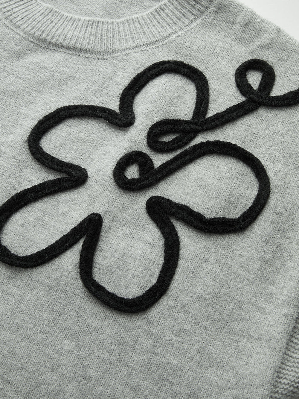 Top de punto suave ajustado con perlas sintéticas y flores 3D