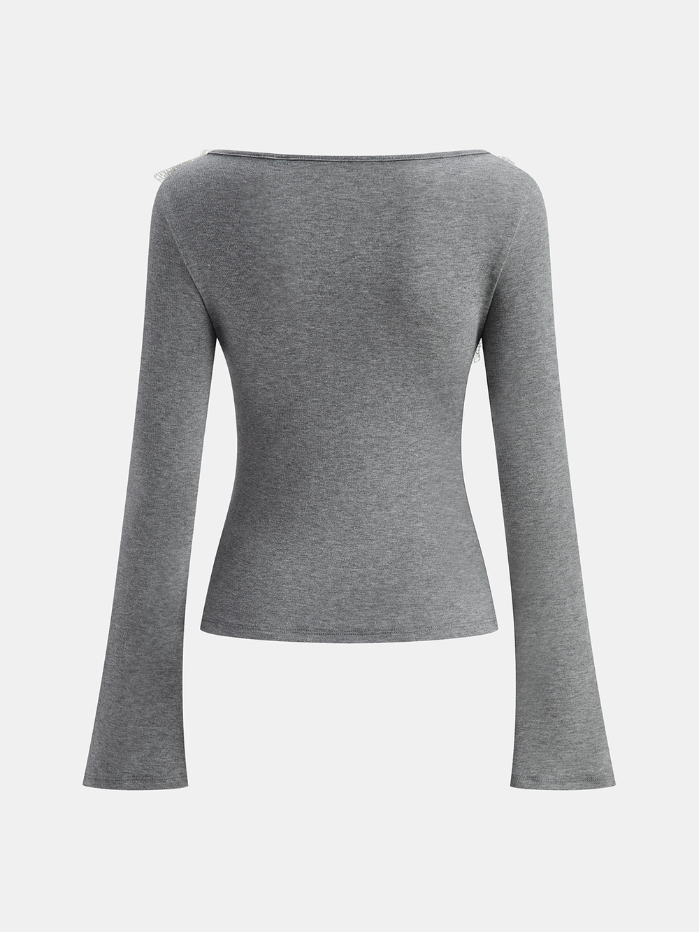 Suéter con Hombros Descubiertos Decorado con Piedras