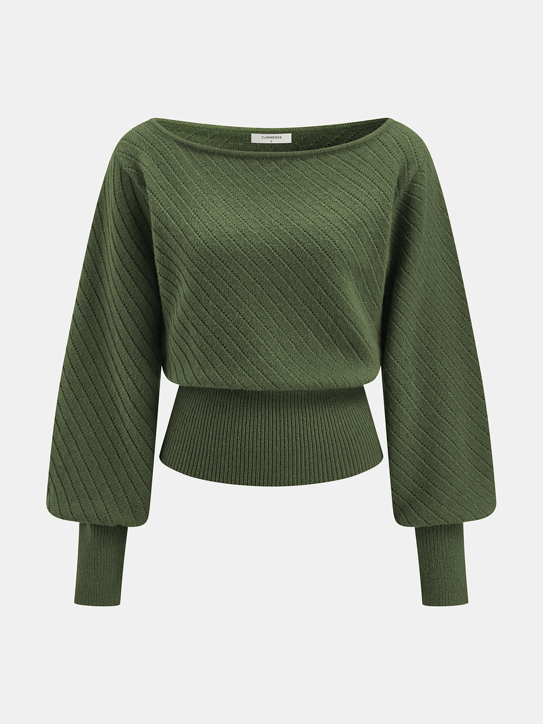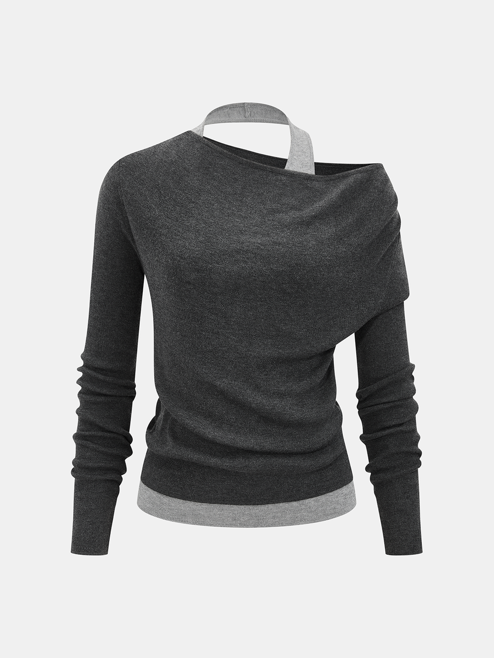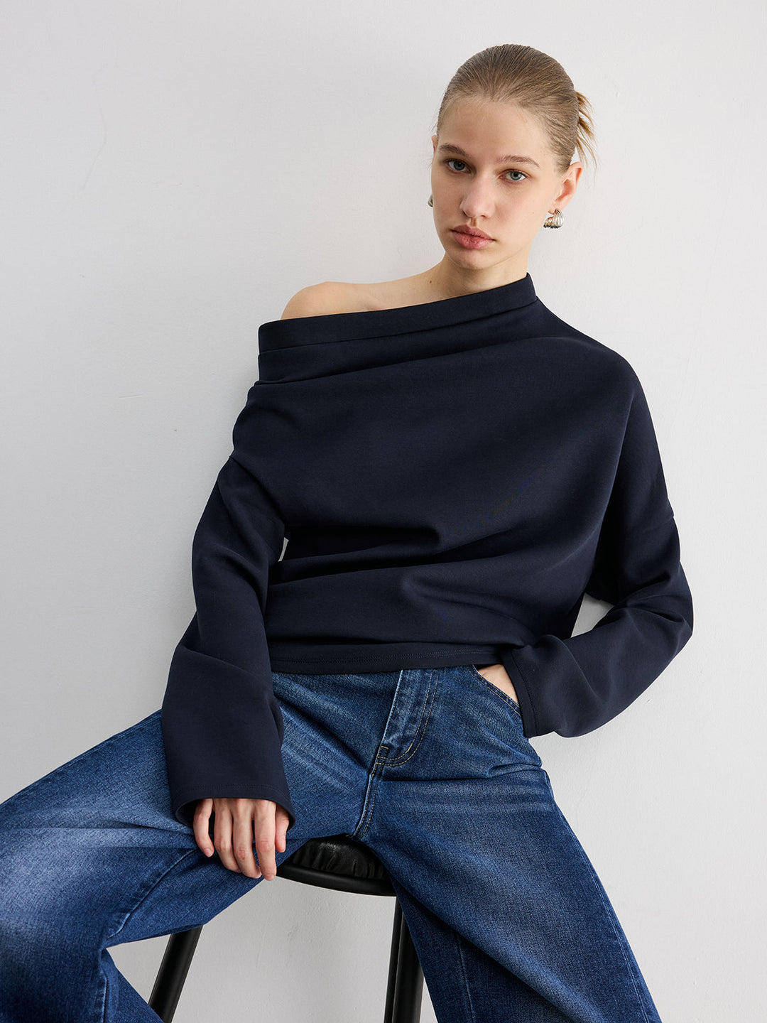Top asimétrico de punto con hombros al aire en mezcla de lana