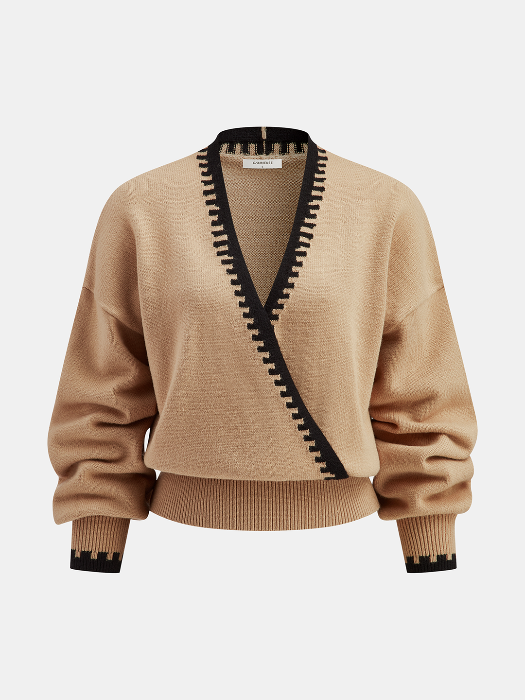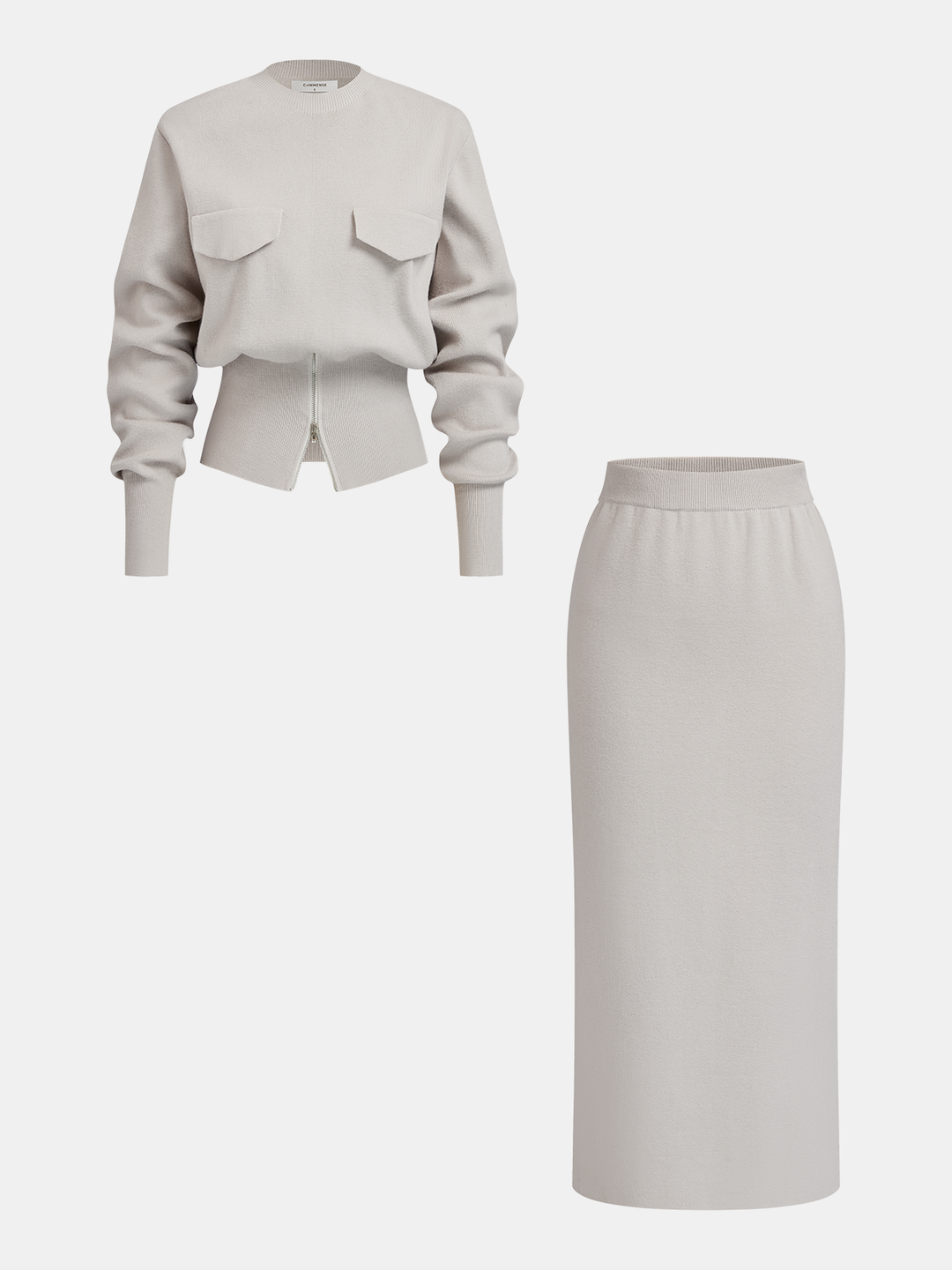 Conjunto de Dos Piezas de Suéter de Encaje con Cuello en V