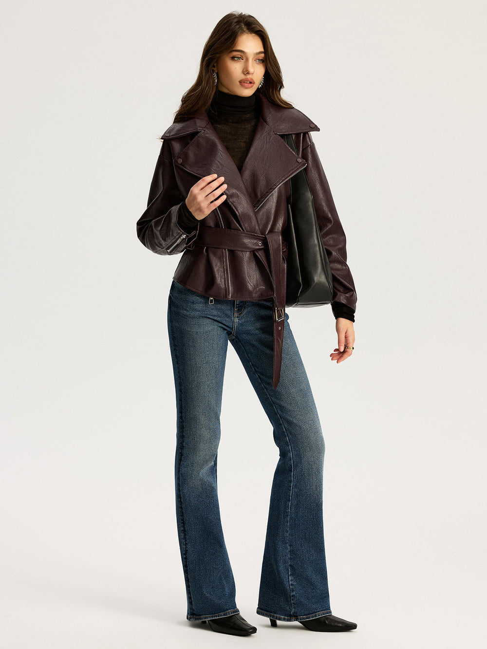 Chaqueta de Piel Sintética con Cierre y Cinturón