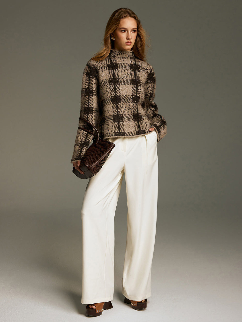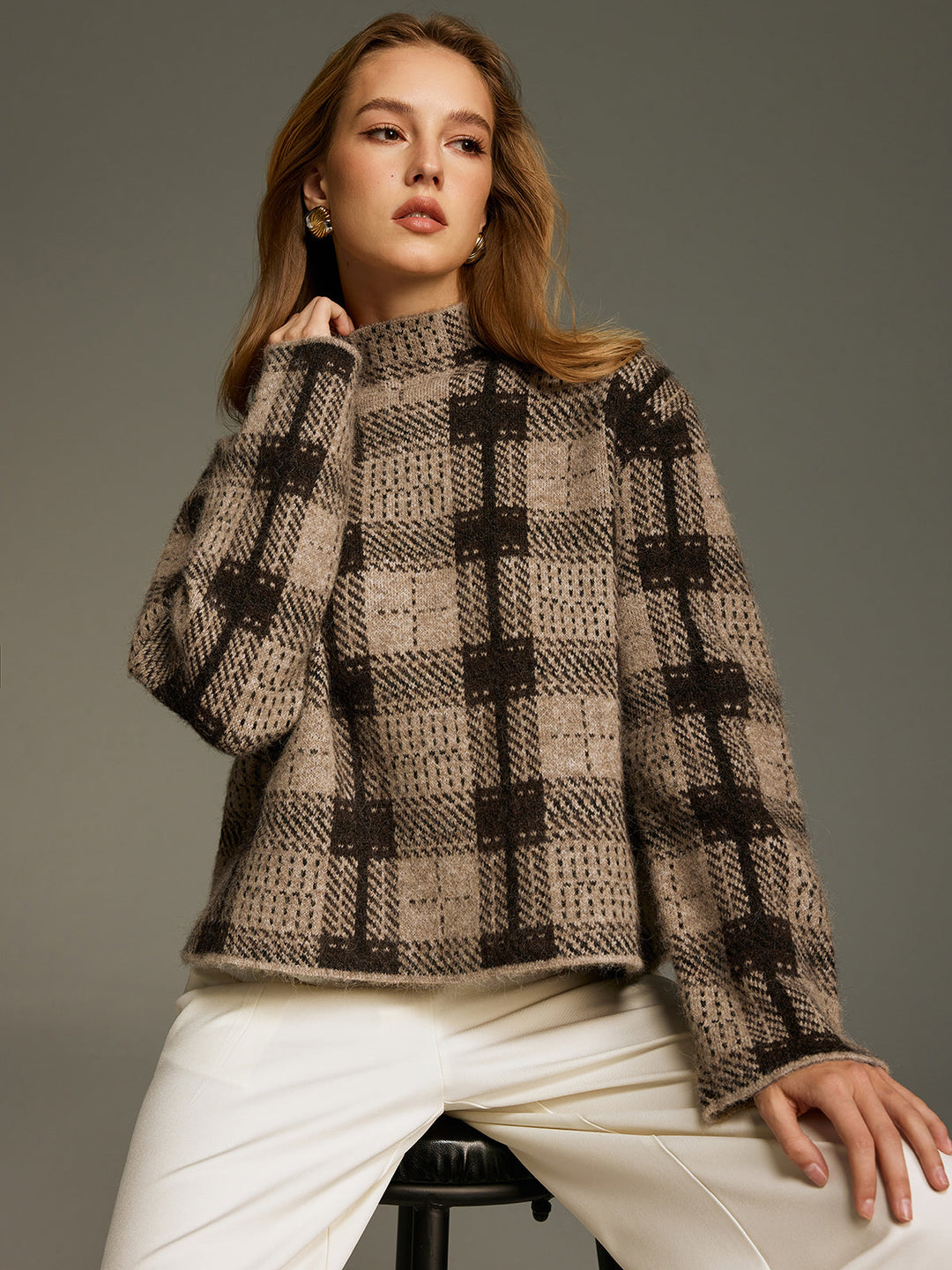 Suéter de Cuello Alto de Mezcla de Lana con Diseño Argyle