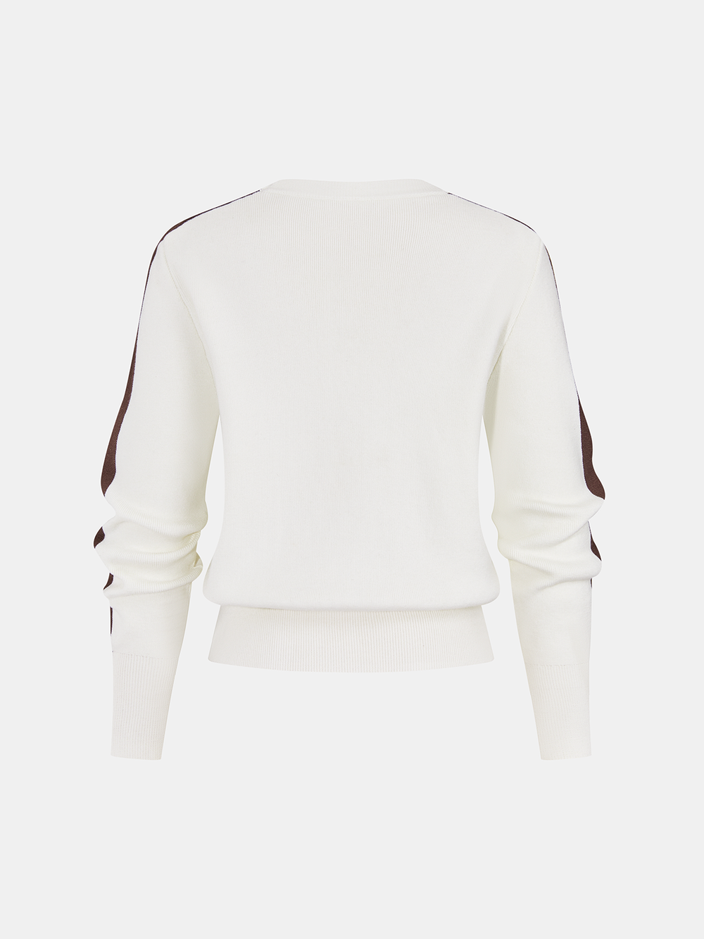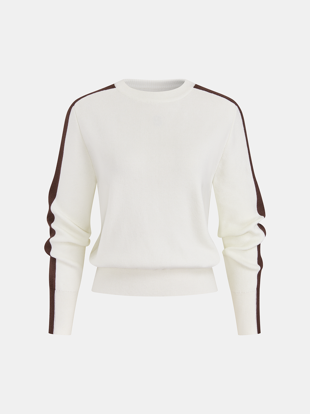 Suéter de Cuello Redondo a Rayas en Mezcla de Lana